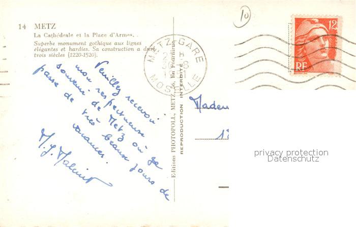 13512599 carte postale Metz 57 Moselle La Cathedrale Place d Armes postalisch gelaufen Erhaltung siehe scans [FriedD77] KatCode: 11170057957463