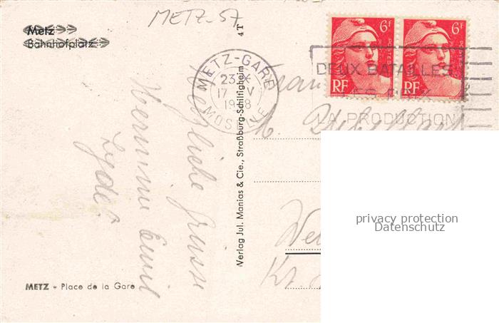 14104389 carte postale METZ 57 Moselle Place de la Gare postalisch gelaufen Erhaltung siehe scans [FriedD77] KatCode: 11170057957463