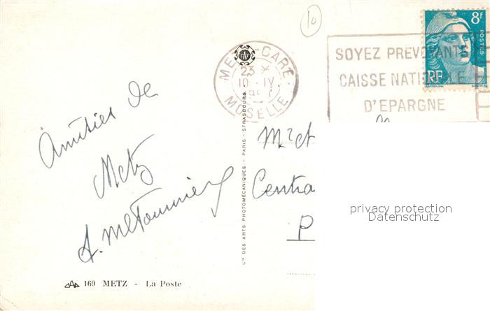 13515371 carte postale Metz 57 Moselle Post postalisch gelaufen Erhaltung siehe scans [KathaD81] KatCode: 11170057957463
