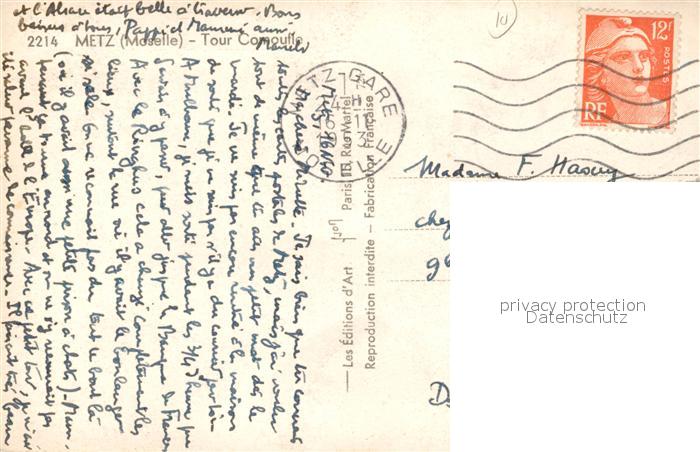 13512614 carte postale Metz 57 Moselle Tour Comoufle postalisch gelaufen Erhaltung siehe scans [FriedD77] KatCode: 11170057957463