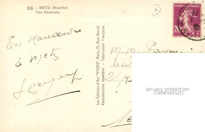 13512435 carte postale Metz 57 Moselle Vue Generale postalisch gelaufen Erhaltung siehe scans [FriedD77] KatCode: 11170057957463