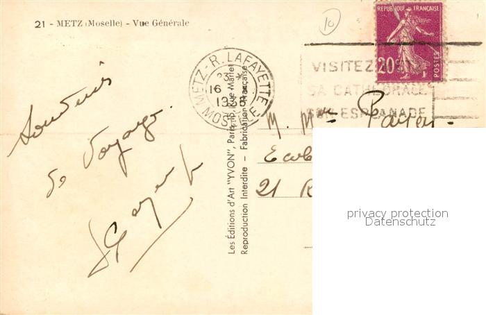 13512432 carte postale Metz 57 Moselle Vue Generale postalisch gelaufen Erhaltung siehe scans [FriedD77] KatCode: 11170057957463