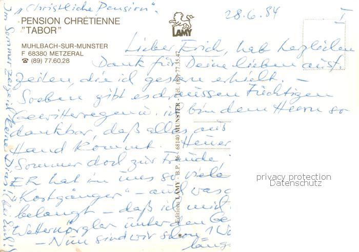 13793421 Metzeral Metseral 68 Alsace Pension Chrétienne Tabor postalisch nicht gelaufen Erhaltung siehe scans [FriedD77] Frie Katcode 11170068268204