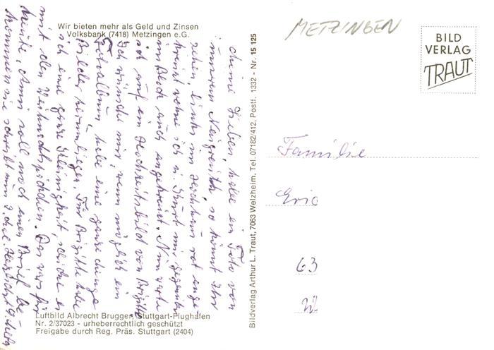 73873272 Metzingen Erms BW Fliegeraufnahme postalisch nicht gelaufen Erhaltung siehe scans [FriedD77] KatCode: 11110008415050