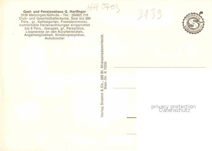72666392 Metzingen Niedersachsen Gasthaus Pension Harlfinger postalisch nicht gelaufen Erhaltung siehe scans [FriedD77] KatCode: 11110003354006