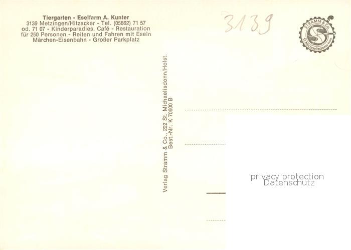 73087838 Metzingen Niedersachsen Tiergarten Eselfarm postalisch nicht gelaufen Erhaltung siehe scans [KathaD81] KatCode: 11110003354006