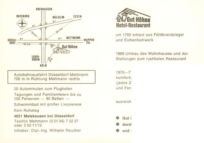 73896471 Metzkausen Gut Hoehne Hotel Restaurant Kaminzimmer Gastraeume Gaestezimmer postalisch nicht gelaufen Erhaltung siehe scans [WerneD78] KatCode: 11110005158024