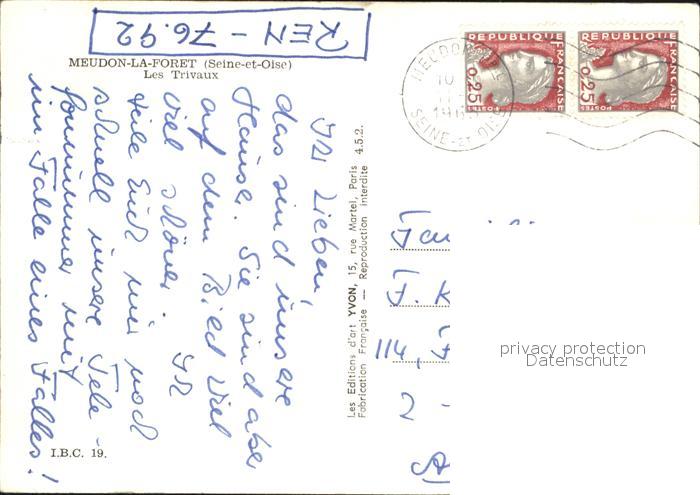 12600831 carte postale Meudon Les Trivaux postalisch gelaufen Erhaltung siehe scans [NatalD47] KatCode: 11170092392048