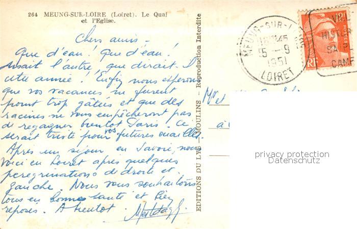 13640141 Meung-sur-Loire Le quai et l’Eglise postalisch gelaufen Erhaltung siehe scans [FriedD77] carte postale Frie Katcode 11170045245203