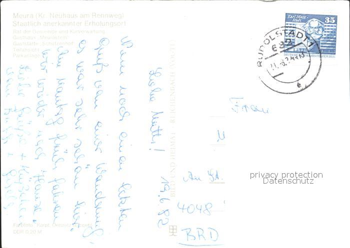 72240045 alte Postkarte Meura Gasthaus Meurastein Rat der Gemeinde postalisch gelaufen Erhaltung siehe scans KatCode: 11110016073055