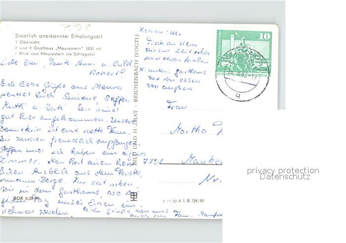 71945745 alte Postkarte Meura Gasthaus Meurastein Schlagetel postalisch gelaufen Erhaltung siehe scans KatCode: 11110016073055