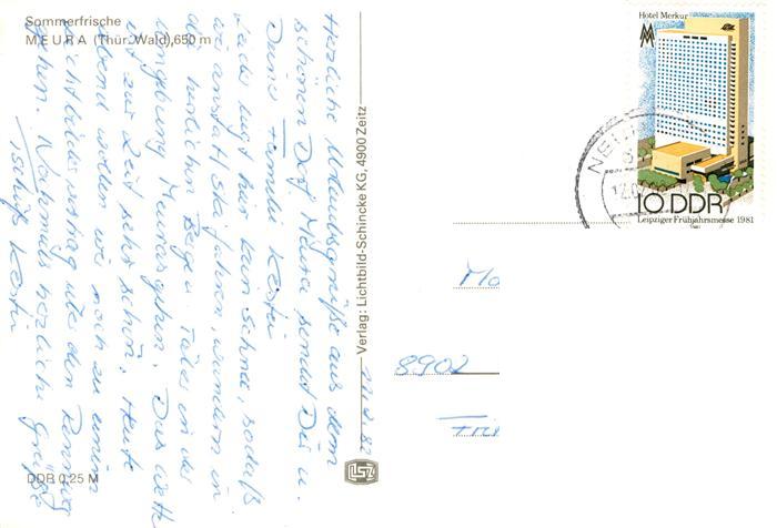 73902083 alte Postkarte Meura Ortsansicht mit Kirche Sommerfrische postalisch gelaufen Erhaltung siehe scans [FriedD77] KatCode: 11110016073055
