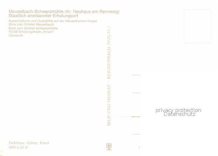 72926015 Meuselbach-Schwarzmuehle Aussichtsturm Panorama FDGB Erholungsheim Hirsch postalisch nicht gelaufen Erhaltung siehe scans [WerneD78] KatCode: 11110016073056