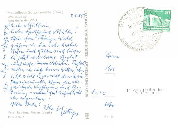 72642664 alte Postkarte Meuselbach-Schwarzmuehle Ferienheim der CDU Waldfrieden postalisch gelaufen Erhaltung siehe scans [WerneD78] KatCode: 11110016073056