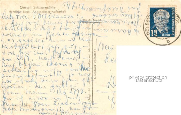 73751166 alte Postkarte Meuselbach-Schwarzmuehle Panorama Schwimmbad Teilansichten postalisch gelaufen Erhaltung siehe scans [WerneD78] KatCode: 11110016073056