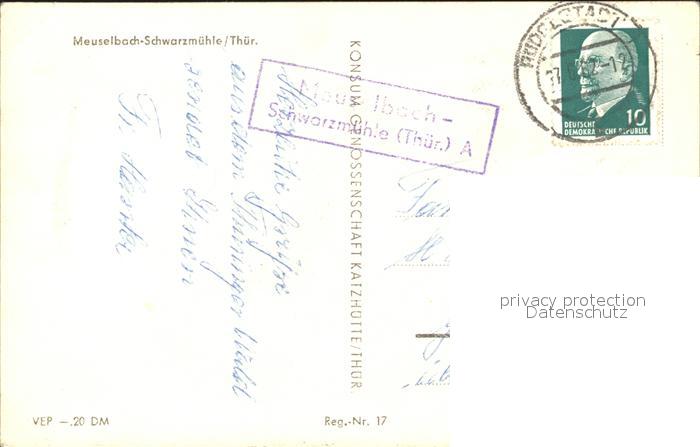 71982445 alte Postkarte Meuselbach-Schwarzmuehle Teilansicht Bruecke postalisch gelaufen Erhaltung siehe scans KatCode: 11110016073056