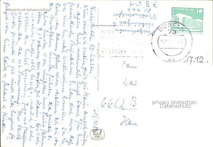 71986784 alte Postkarte Meuselbach-Schwarzmuehle Teilansicht postalisch gelaufen Erhaltung siehe scans KatCode: 11110016073056
