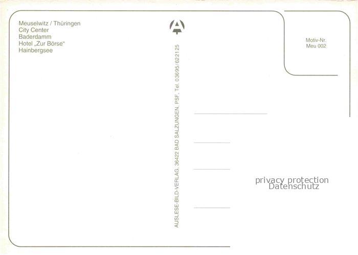 74026227 Meuselwitz Thueringen City Center Baderdamm Hotel Zur Boerse Hainbergsee postalisch nicht gelaufen Erhaltung siehe scans [FriedD77] KatCode: 11110016077032