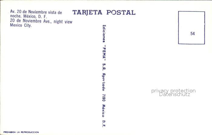 Mexico City Avenue 20 de Noviembre Nachtaufnahme postalisch nicht gelaufen Erhaltung siehe scans