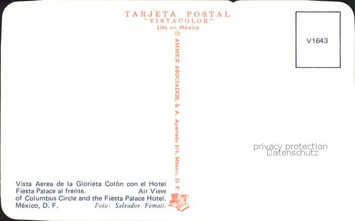 Mexico City Glorieta Colon con el Hotel Fiesta Palace Columbus Circle Palace Hotel vista aerea postalisch nicht gelaufen Erhaltung siehe scans