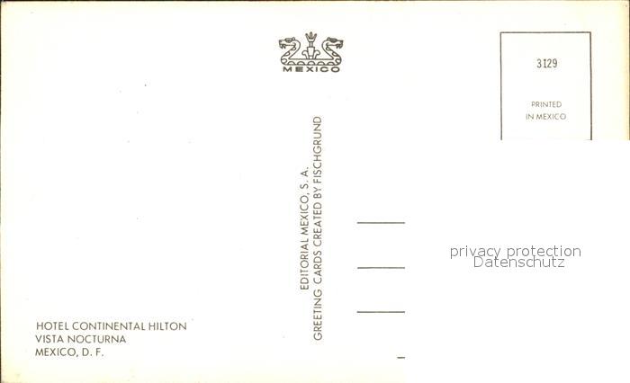 Mexico City Hotel Continental Hilton by Night postalisch nicht gelaufen Erhaltung siehe scans