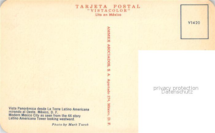Mexico City Vista Panoramica desde La Torre Latino Americans mirando al Oeste postalisch nicht gelaufen Erhaltung siehe scans [WerneD78]