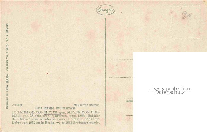 74067027 MEYER Johann Georg Kuenstlerkarte das kleine Muetterchen Bremen postalisch nicht gelaufen Erhaltung siehe scans [SanaeD93] KatCode: 22240000003200