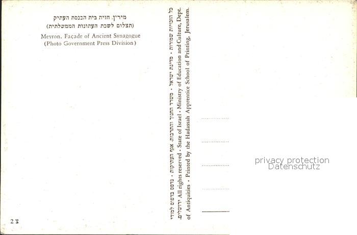 Meyron Facade of ancient Synagogue Ruinen Antike postalisch nicht gelaufen