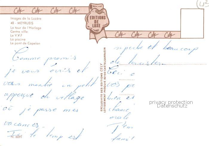 13786723 Meyrueis 48 Lozere La tour de l’Horloge Centre ville Le VVF La piscine Le pont de Capelan postalisch gelaufen Erhaltung siehe scans [WerneD78] carte postale Wern Katcode 11170048148096