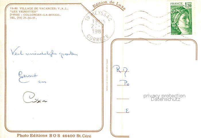 12662006 carte postale Meyssac Urlauberdorf Les Vignottes postalisch gelaufen Erhaltung siehe scans [AndreD76] KatCode: 11170019119138
