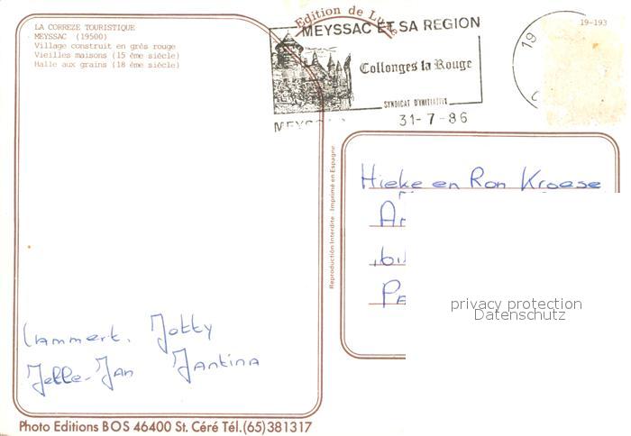 12960977 carte postale Meyssac Vieilles maisons 15eme siecle Halle aux grains 18eme siecle postalisch gelaufen Erhaltung siehe scans [FriedD77] KatCode: 11170019119138