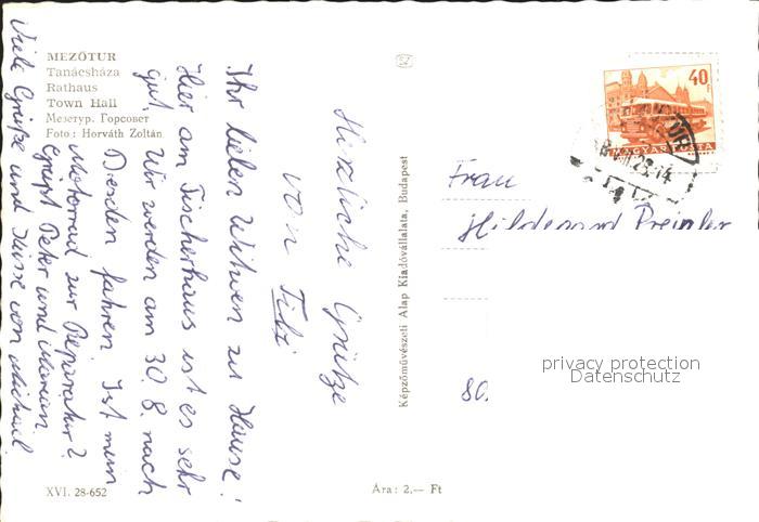 old postcard Mezoetur Rathaus postalisch gelaufen Erhaltung siehe scans