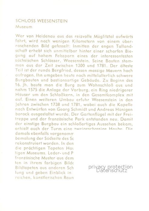 73564819 M?glitztal Schloss Weesenstein Museum postalisch nicht gelaufen Erhaltung siehe scans [LiesaD40] KatCode: