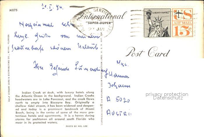 72516534 old postcard Miami Beach Across Indian Creek postalisch gelaufen Erhaltung siehe scans KatCode: 14140110000000