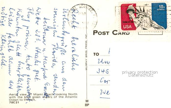 73716341 old postcard Miami Beach Aerial view postalisch gelaufen Erhaltung siehe scans [WerneD78] KatCode: 14140110000000