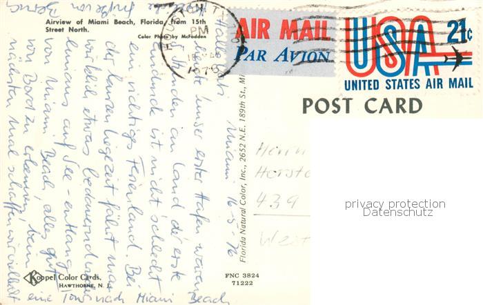 73813014 old postcard Miami Beach Aerial view postalisch gelaufen Erhaltung siehe scans [FriedD77] KatCode: 14140110000000