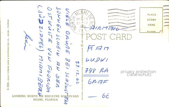 71859365 old postcard Miami Beach Biscayne Boulevard postalisch gelaufen Erhaltung siehe scans KatCode: 14140110000000