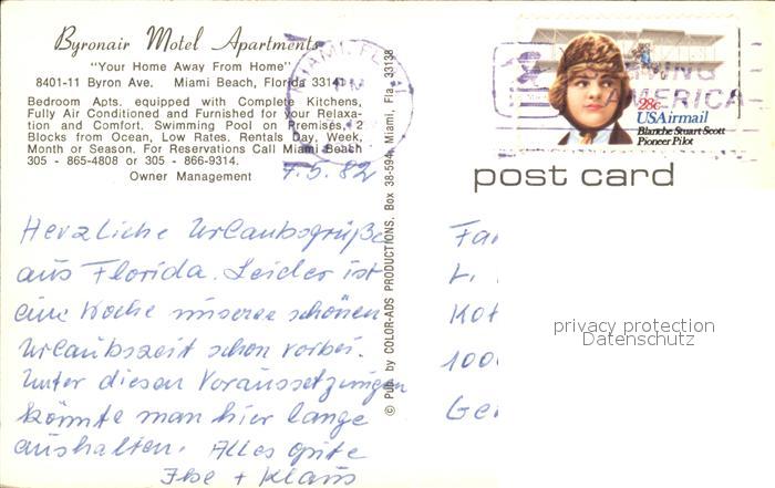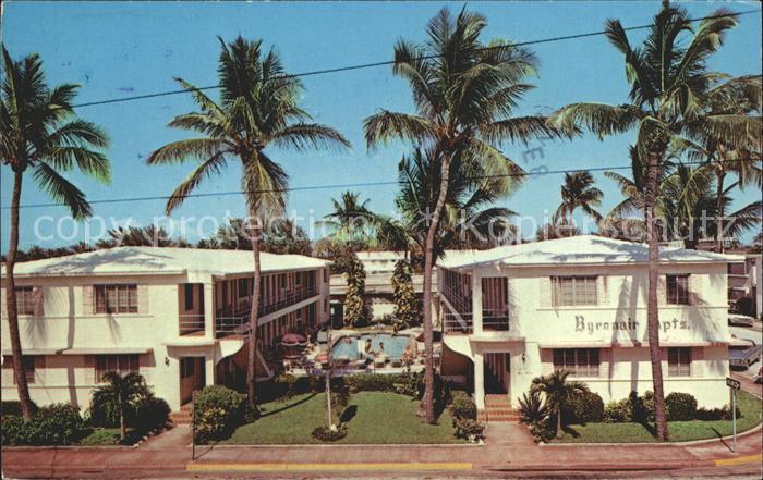 72161970 old postcard Miami Beach Byronair Motel Apartments postalisch gelaufen Erhaltung siehe scans KatCode: 14140110000000