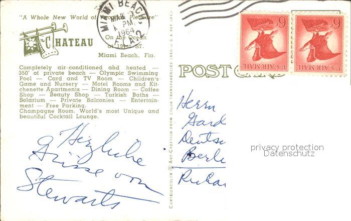 72161925 old postcard Miami Beach Chateau Hotel Swimming Pool postalisch gelaufen Erhaltung siehe scans KatCode: 14140110000000
