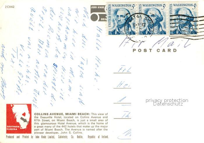 72929365 old postcard Miami Beach Collins Avenue postalisch gelaufen Erhaltung siehe scans [NatalD47] KatCode: 14140110000000