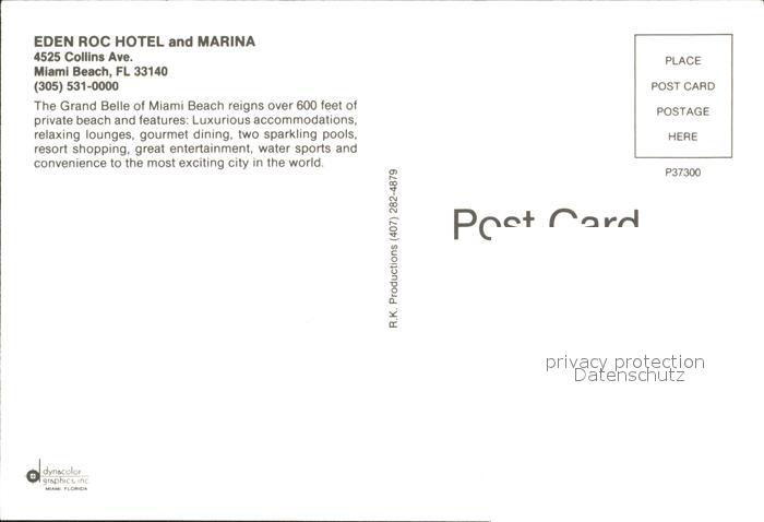 72155406 Miami Beach Eden Roc Hotel and Marina postalisch nicht gelaufen Erhaltung siehe scans KatCode: 14140110000000