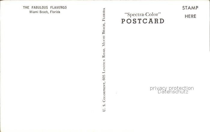 71954686 Miami Beach Flamingo Hotel postalisch nicht gelaufen Erhaltung siehe scans KatCode: 14140110000000