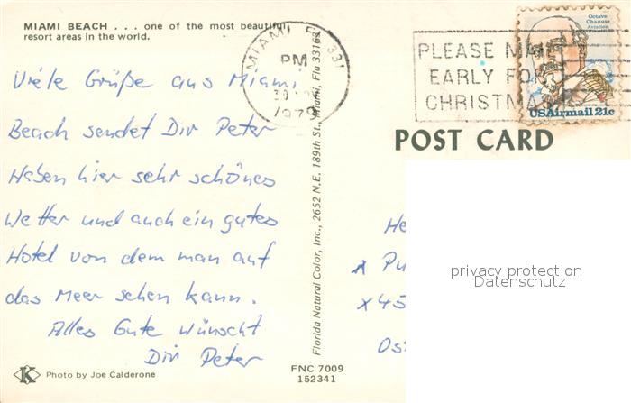 73645906 old postcard Miami Beach Fliegeraufnahme postalisch gelaufen Erhaltung siehe scans [WerneD78] KatCode: 14140110000000