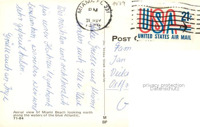 73051301 old postcard Miami Beach Fliegeraufnahme postalisch gelaufen Erhaltung siehe scans [KathaD81] KatCode: 14140110000000