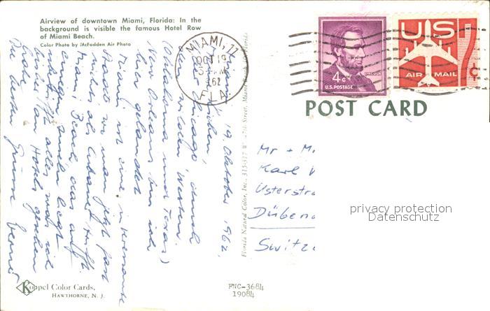 11686299 old postcard Miami Beach Fliegeraufnahme downtown Hotel Row postalisch gelaufen Erhaltung siehe scans KatCode: 14140110000000