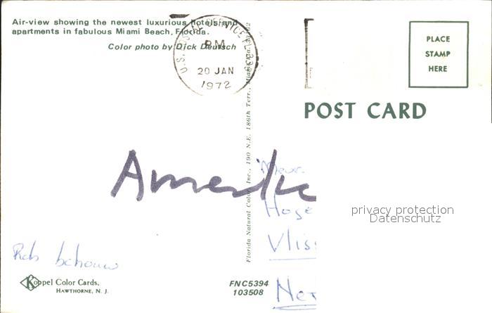72272878 old postcard Miami Beach Fliegeraufnahme Hotel Apartments fabulous postalisch gelaufen Erhaltung siehe scans KatCode: 14140110000000