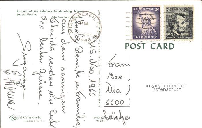 11686093 old postcard Miami Beach Fliegeraufnahme Hotels along Beach postalisch gelaufen Erhaltung siehe scans KatCode: 14140110000000