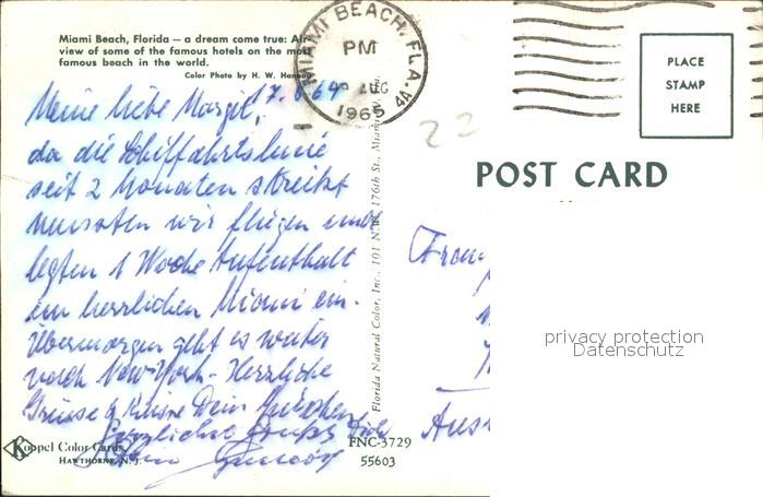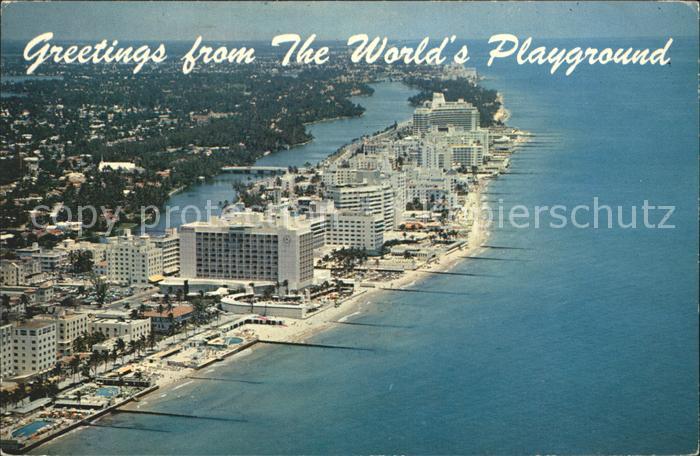 72304026 old postcard Miami Beach Fliegeraufnahme Hotels am Strand postalisch gelaufen Erhaltung siehe scans KatCode: 14140110000000