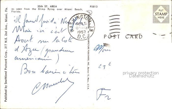71990960 old postcard Miami Beach Fliegeraufnahme Hotels am Strand postalisch gelaufen Erhaltung siehe scans KatCode: 14140110000000