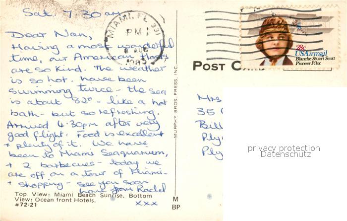 73126081 old postcard Miami Beach Fliegeraufnahme Strandpromenade Hotel postalisch gelaufen Erhaltung siehe scans [KathaD81] KatCode: 14140110000000